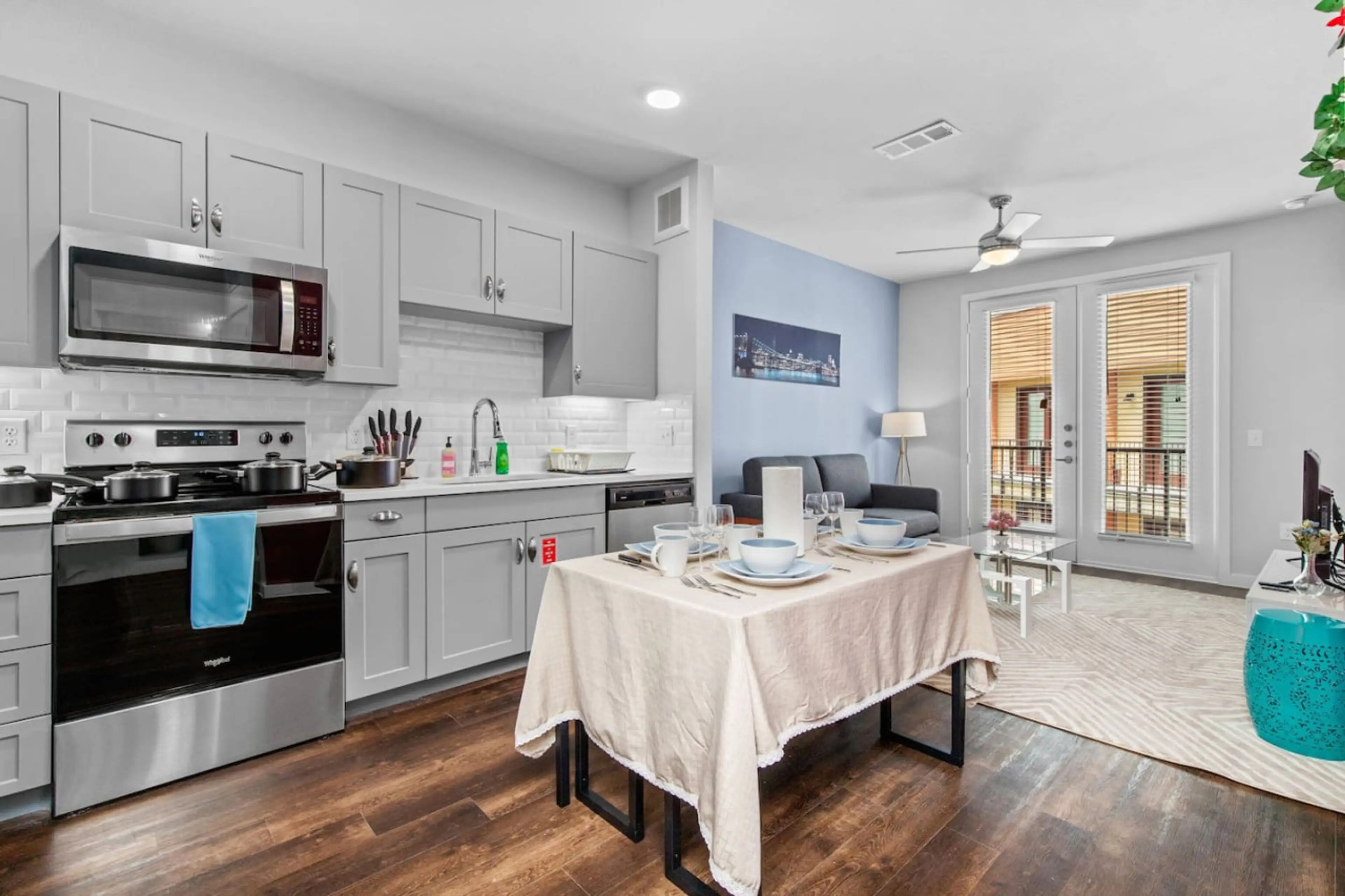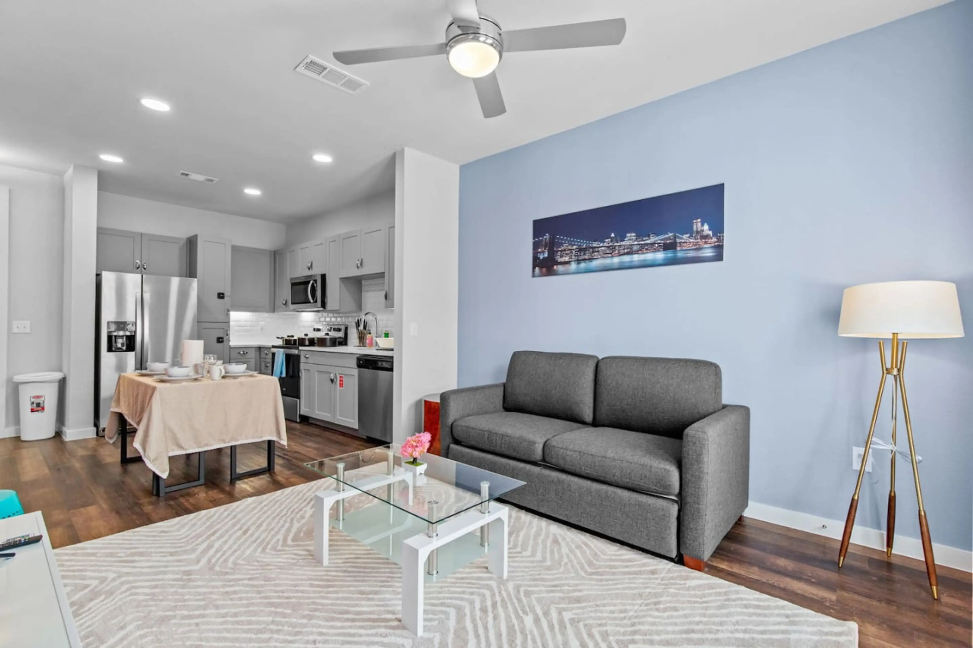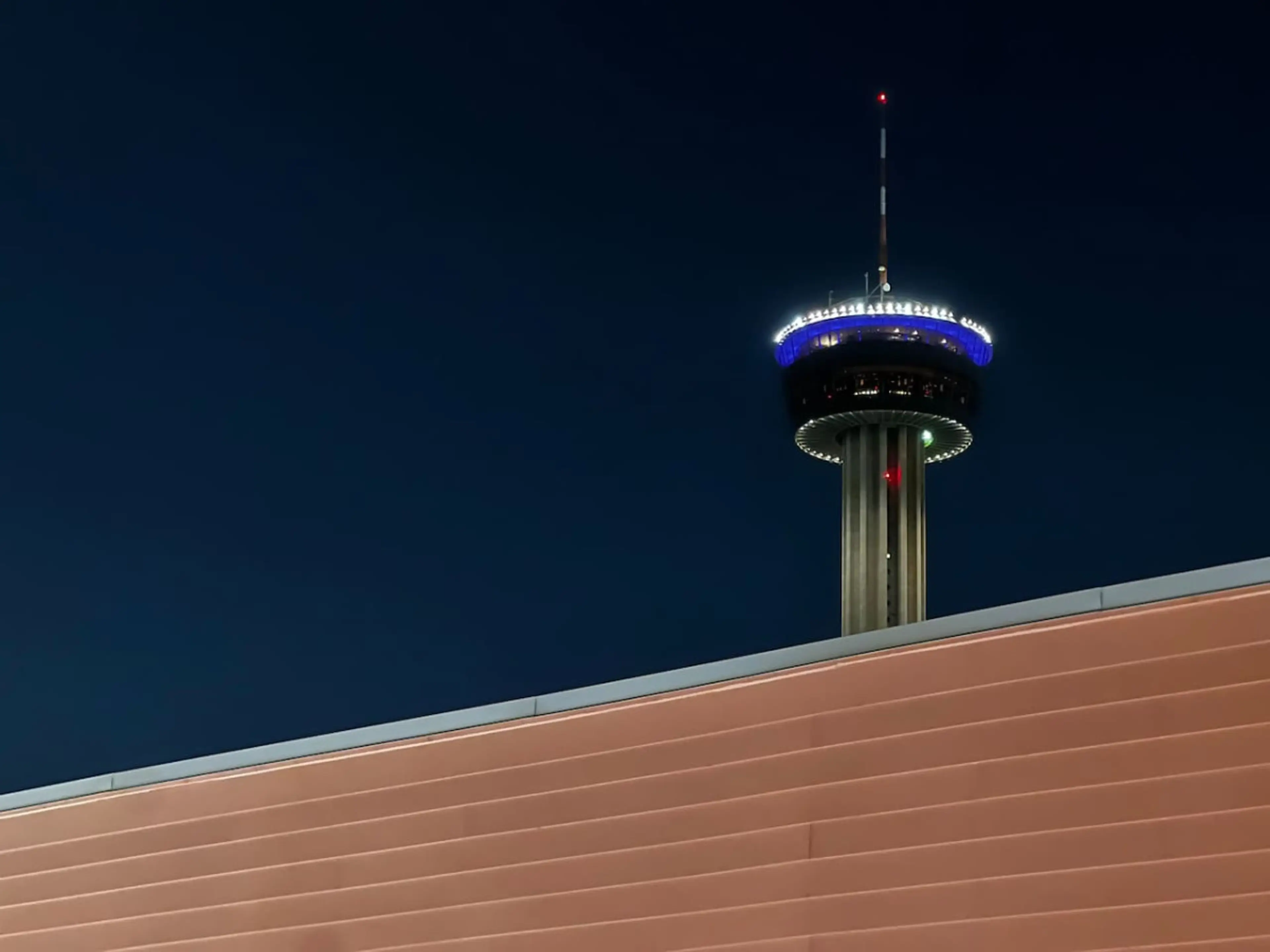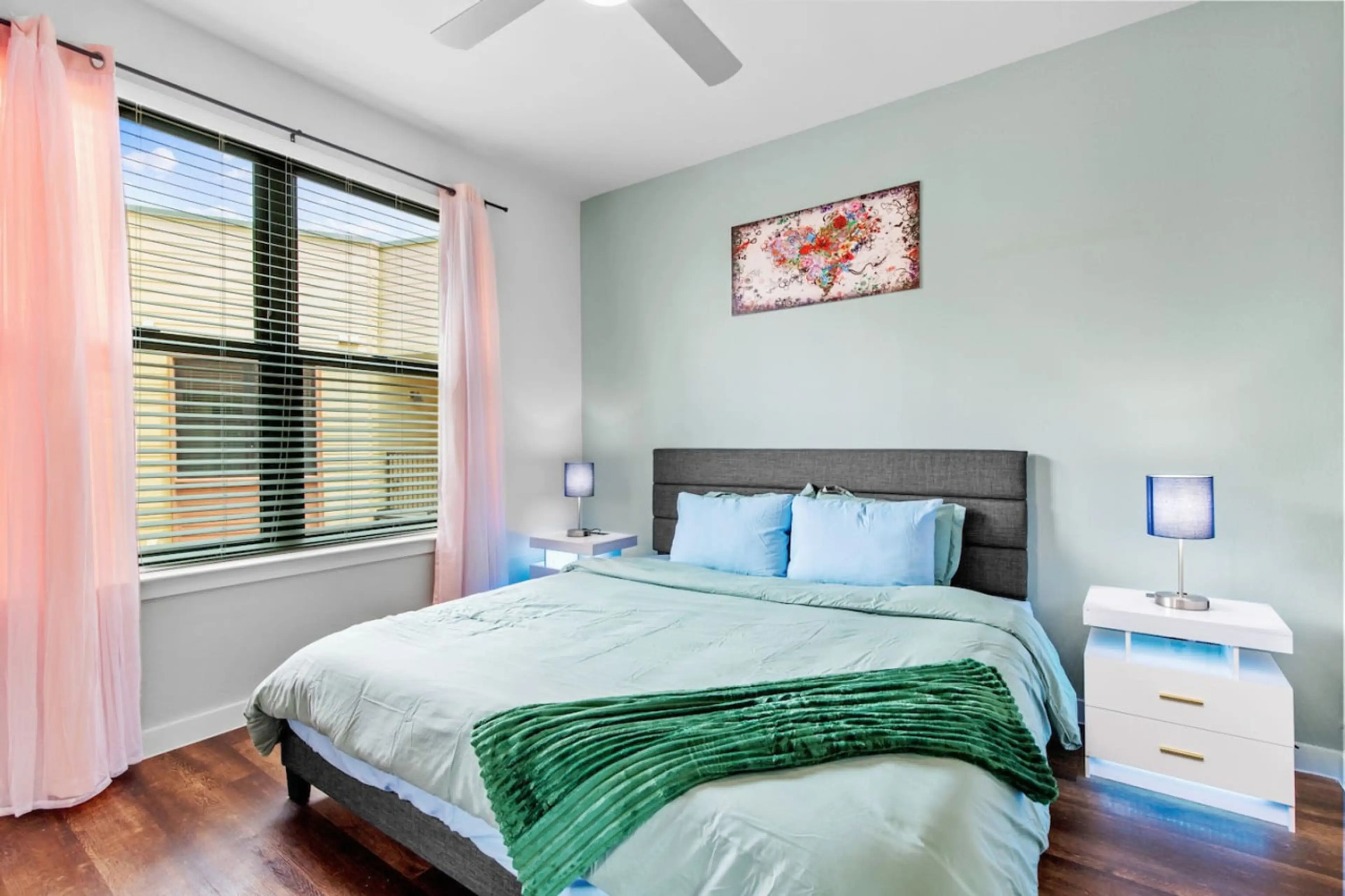 Immerse yourself in a vibrant and serene retreat at the pinnacle of downtown San Antonio. This one-bedroom haven, with two free parking spaces, is adorned in soothing hues. It features a king bed and a queen sofa bed, accommodating up to four guests. Marvel at breathtaking views of the Tower of Amer...